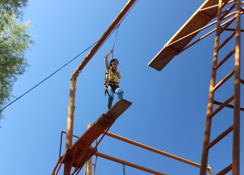 “高空項(xiàng)目”需要參與人員有一定的膽識(shí)與眼力,在向上攀登的過程之中需要的是體力,進(jìn)行高空跨越之時(shí)需要的是膽識(shí)與判斷力,而自高空而下之時(shí)需要的是勇氣。